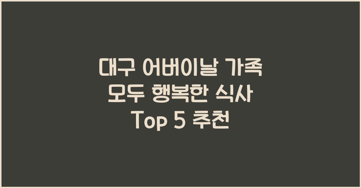 어버이날은 그리움을 나누고, 감사의 마음을 전하는 특별한 날입니다. 대구에서 가족과 함께 행복한 식사를 나누기에 적당한 장소를 찾는 것은 그 의미를 더욱 깊게 만들어 줍니다. 이번에는 '대구 어버이날, 가족 모두 행복한 식사 Top 5 추천'을 통해 맛있는 음식을 즐기며 사랑을 나눌 수 있는 식당들을 소개해 드리겠습니다.